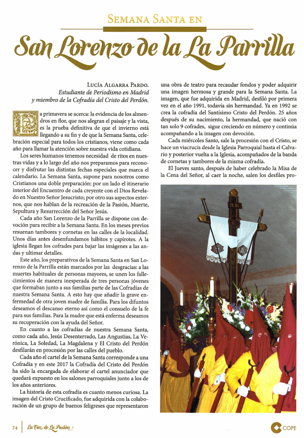 Artículo de la Semana Santa en SanLorenzo de laParrilla ublicado en la revista «La Voz de la Pasión»