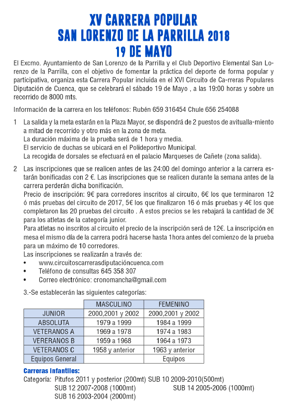 XV CARRERA POPULAR. SAN LORENZO DE LA PARRILLA My Review Review Form... Reviews Loading Reviews... Ayuntamiento San Lorenzo de la Parrilla2018-05-09T10:34:14+00:00