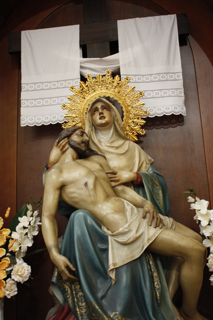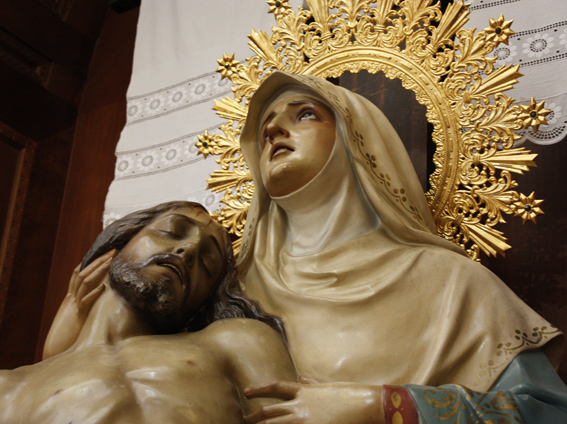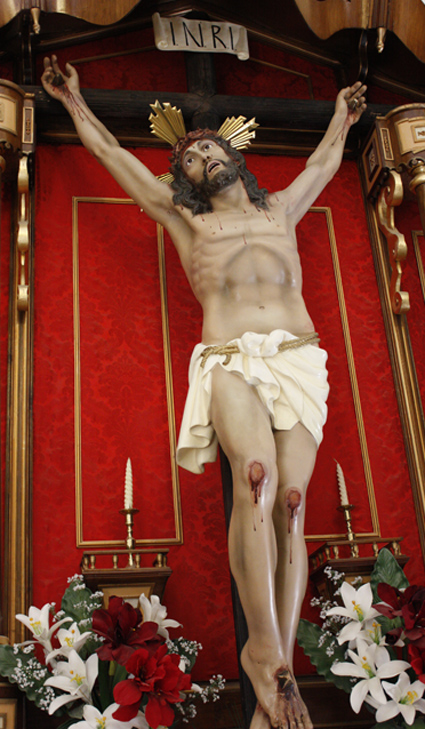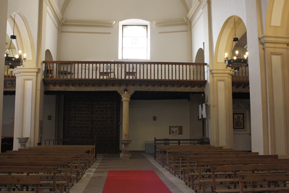 A los pies de la nave principal está situado el coro, adornado con una balaustrada.